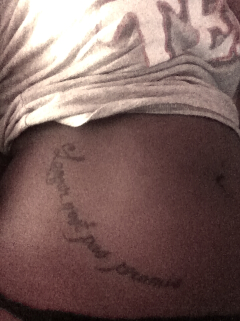 My second tattoo that I got on my lower stomach, I got it in my second language, French. It says ‘’L’amour n’est pas promis,’’ which is translated to, ‘’Love isn’t a promise.’’ I got this about a year and a half ago, once again it seems like a basic teenage bitter girl tattoo, but there’s also a story behind it. I got this also as a reminder. In my day and age, it seems like searching for that significant someone is SO important, it sometimes distorts your vision on what is really important. I got this to remind me that I shouldn’t go searching for something that isn’t promised, and also not to get discouraged if I don’t achieve this utopia of love with a significant other. Like everything else in life, it isn’t a promise. If it’s meant to happen, it’ll find its way to me.