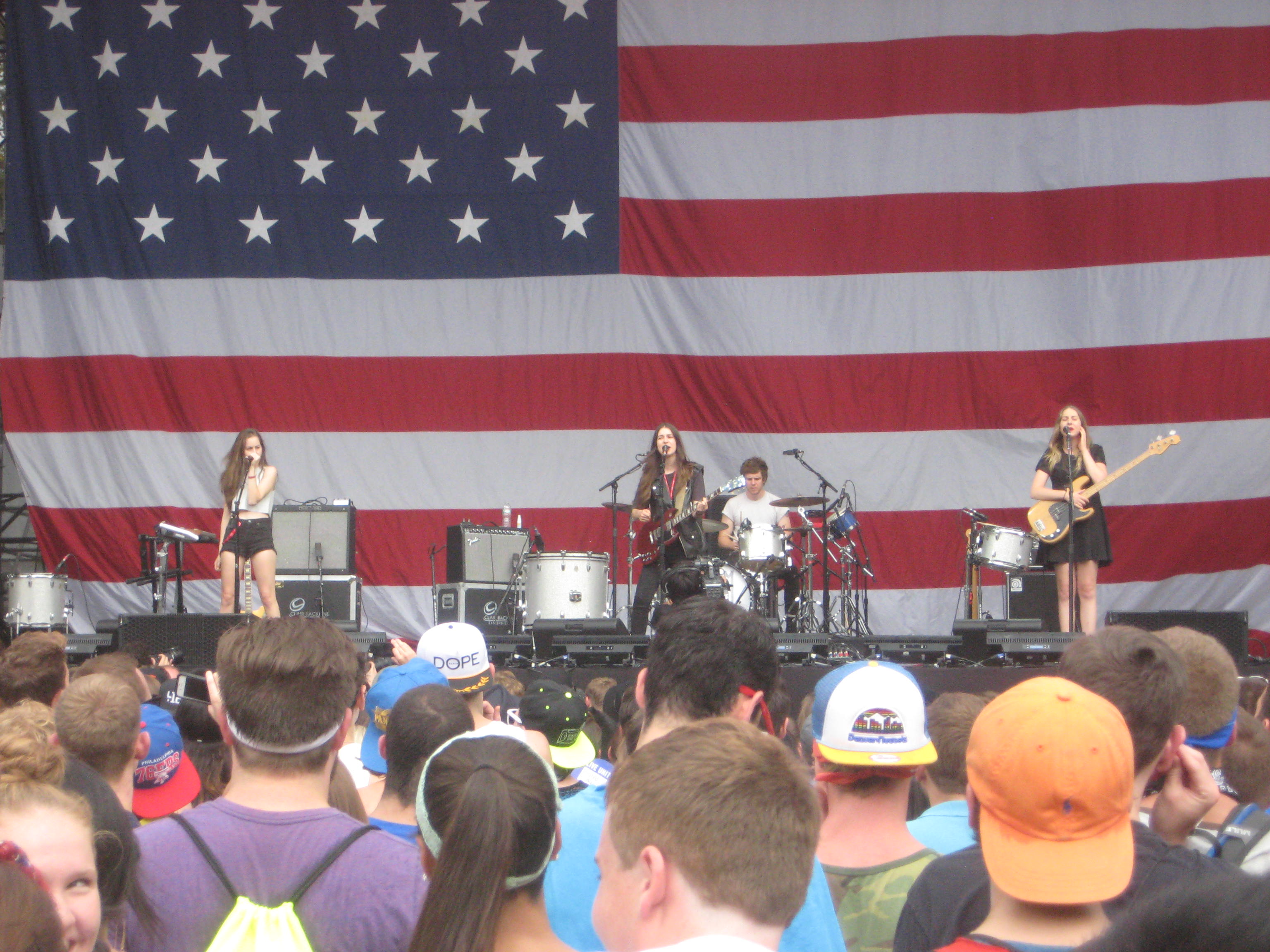 The festivities (for us) kicked off when we arrived at BFP a little before 2. Music had started early, so it was only right that we investigate the premises. In addition to the new stages, they had a ride right in the middle which was a bit of an eyesore, but it gave MIA a carnival appeal at that point – no clowns, Shawn? Also, there seemed to be more barricaded areas and not really any more independent retailers/artwork to pick at. I guess because there was an anticipation of more people, they had to accommodatefor that, which is understandable, but it was cool to see last year. We walked around for a bit because the goal was to see A$AP Rocky at 3:15 at the Rocky stage (future rap line: “Fuck what you say about me, I got money, I got fame. Nigga like me performing at MIA, the stage the same as my name”). Before that happened, we killed some time and watched HAIM perform. The only time I heard this all female group was on Kid CuDi’s album Indicud on a song called Red Eye (which is one of the better songs on the album). They have a vibe that conjures the soul of an 80s pop group, and usually I wouldn’t go for that type of music, but they were good for the couple of songs we stayed for.