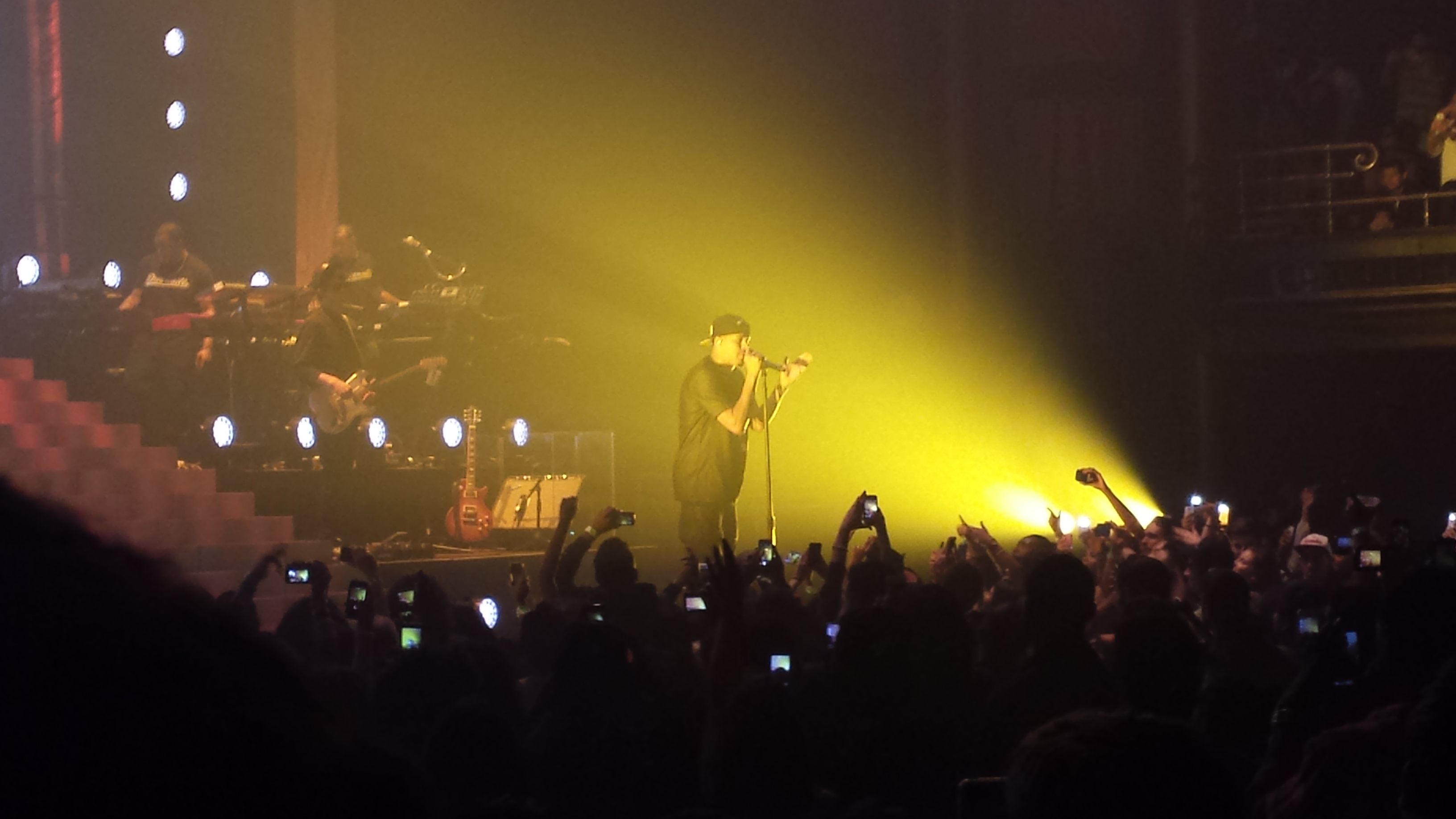 He went back into his catalog a bit as the crowd engaged in every word of every song he did. Testing the day 1 fans and telling the newer fans to stay out of it if they didn’t, he went into Blow Up, Nobody’s Perfect, and Work Out. His first album did (sales wise) better than expected, and those were a couple of big hits (I was told that he performed Blow Up both times prior to this show, so that was a surprise to me). Between performing Mo Money a capella, and turning the Hall into a frenzy with Ain’t That Some Shit, he paced it down a bit, but still kept the energy on high. He performed Runaway, and also Forbidden Fruit while Bas joined him on stage (he was part of the ‘movie’).