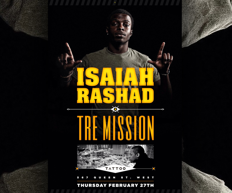 Before I was able to see just how Isaiah would fare, the stage was first opened for Tre Mission, whom was on the bill as the only other name set to perform at Tattoo Rock Parlour. I didn’t look him up before the show, so I would be getting my first impression of him that night. He performed a collective of songs from his MALMAISON album from: High Fashion, Come Right Back, Flashlight Woah, Introdeuce, and even a new track called On Road (flames – absolute flames). The energy that he brought was different from any Toronto artist I’ve seen in a long time, because with the production and his lyrical ability both dope hand in hand, it made for everyone to be bobbing their heads and flexing their arms a little bit (and I’m not just talking about myself).