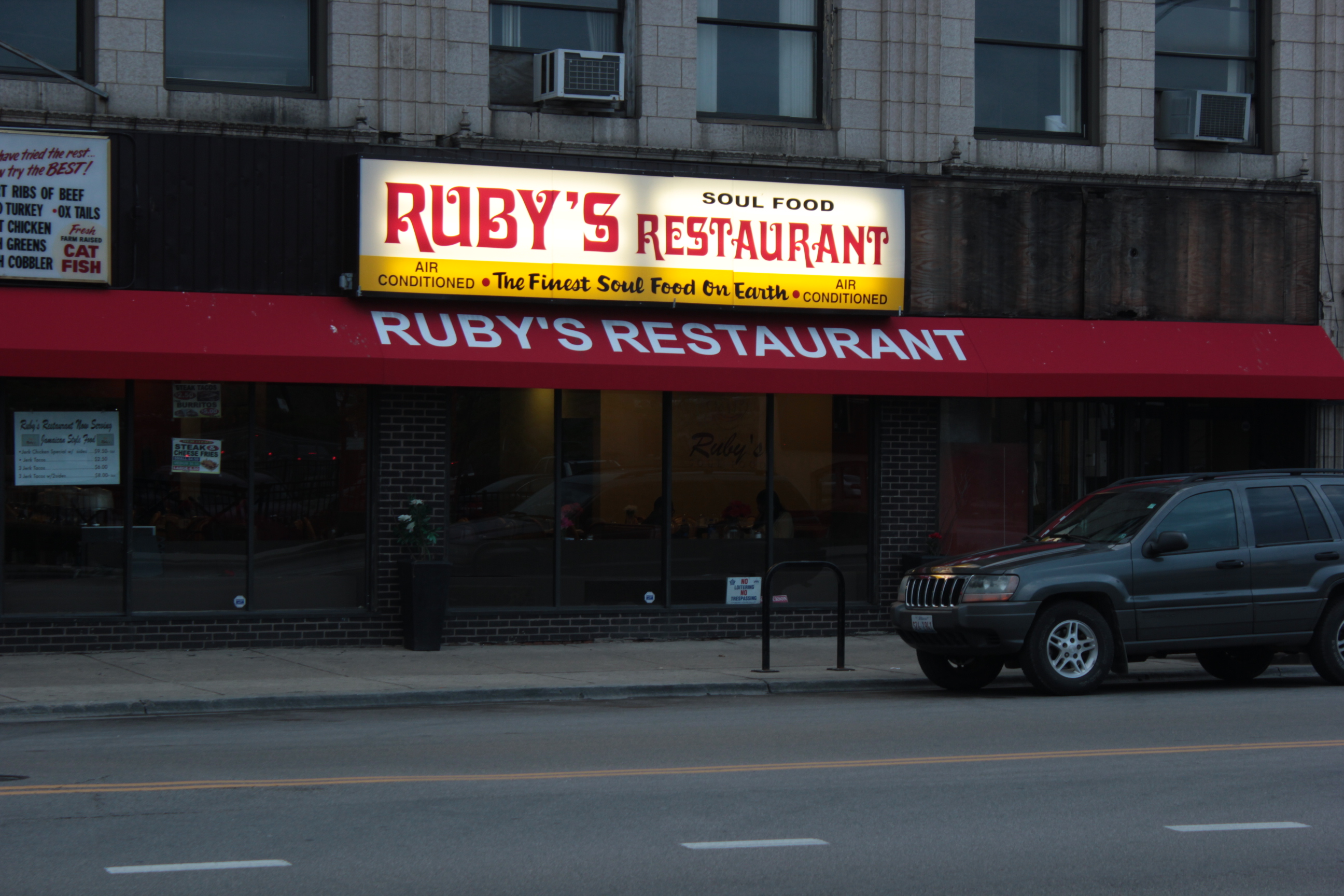 But before we would do any kind of excursion, food was very necessary especially when we left our homes in the 7am hour (EST), and arrived in Chicago around 11am (CST). Bob Marley said it best: ‘a hungry man is an angry man’, but just substitute in ‘woman’ for Mirna’s sake. Not far from us, on Madison & Kedzie was a soul food restaurant called Ruby’s, and truly from the time you step in, the soul hits you like none other. From the welcoming customer service to the smell of delicious food, to the cozy atmosphere filled with Gospel & Soul music, it was all evident that we were really immersed in Black American culture, similar to my experience with Soul food at Delilah’s At the Terminal in Philadelphia. The choices of food were bountiful, but I didn’t want my eyes to be bigger than my stomach, although it would have taken beach ball sized eyes for that to happen on the Thursday afternoon. I went for the Dark Chicken with Collard Greens and Candy Yams. Mirna went for the Neck bones, Yams, and Mac & Cheese. Let me tell you something about Midwesterners if you didn’t know already – they love their food, and after eating that selection, I truly understand why. Mirna had this big ass piece of German Chocolate Cake that had Coconuts, and the slice was so big, I swear she couldn’t finish it – wrong. She waxed that bad boy with a purpose. I had a bite; two actually. It was damn good. After acquiring necessary itis (See the definition if unfamiliar), a common thing we’d be doing throughout the weekend would be walking it off.