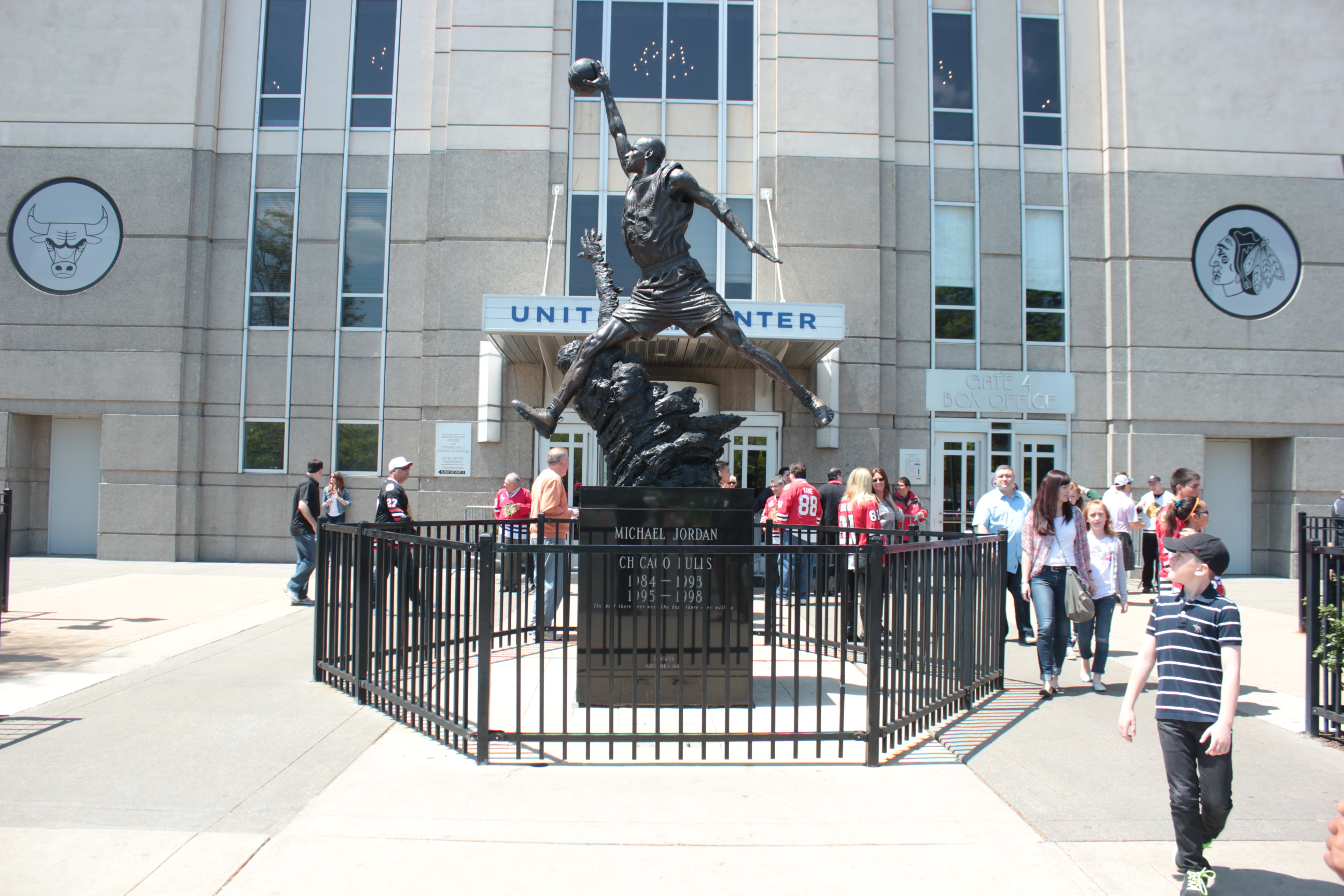 To walk off the food for our last time in Chicago, we decided to walk over to the legendary United Center, home of the Chicago Bulls, and the Chicago Blackhawks, who were hosting Game 1 of the NHL Western Conference Finals against the LA Kings that same day. It was bright and sunny, and since we had so much to kill, the walk over there wasn’t a thing. The building is just in the middle of a neighbourhood, which was impressive as is, and the statues of the Blackhawks players outside were just as cool, but it was one in particular that I had seen the previous night in a taxi as we headed back to our place from Lumen, that was the crown jewel – the Michael Jordan statue, otherwise known as ‘The Spirit’.