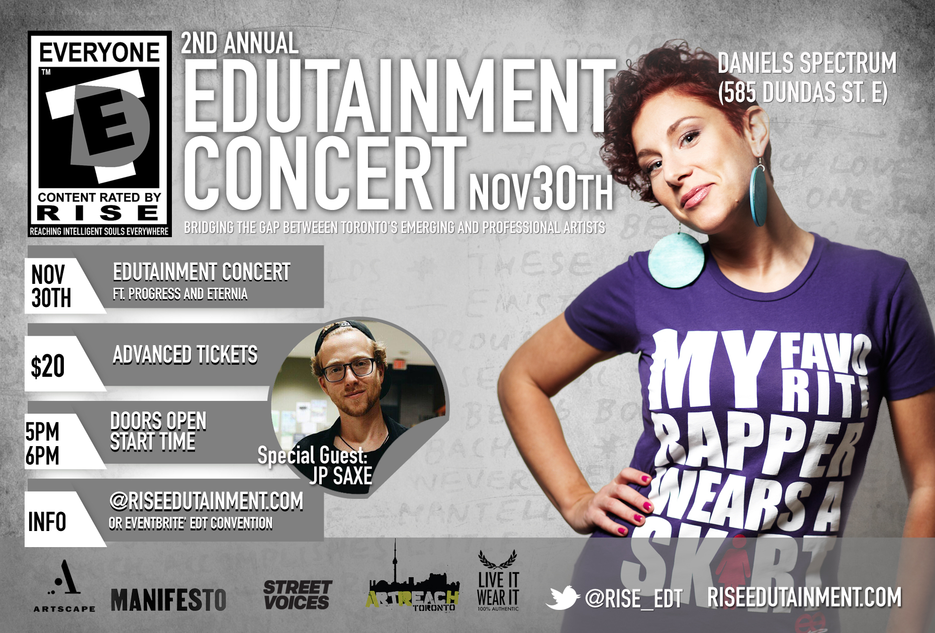 Reaching Individual Souls Everywhere is a powerful movement that inspires many, and I believe will be a force in the coming years in unifying a young Toronto crowd to wanting more out of themselves, their peers, and the city that they live in. To be able to contribute and build upon the potential that has been overwhelmingly under-performing, it’s a chance to usher in a new culture that will supersede mediocrity and promote quality. The Edutainment Concert is one way to highlight the talent in the city that many may know or not, but also a chance for newcomers to grace the stage through various talents in order to perform and create a decent following or at least express themselves the only ways they know how. I was fortunate to be in attendance for the 1st one, and it was a great experience. Daniel Spectrum is a great venue in the heart of Regent Park, so I would strongly encourage anyone to check it out. I’m all for supporting the local talent before it gets out, so do your part. Info is on the flyer below. Enjoy.