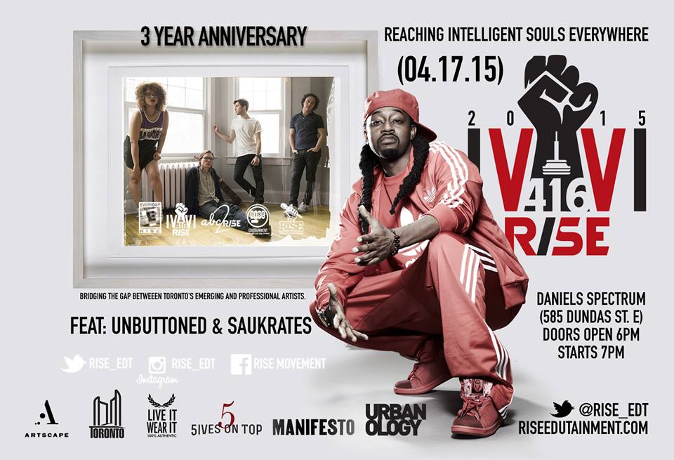 Rise Edutainment is an organization that I’m proud to support and am happy that has been getting the notice from other people in the city, outside of its home base in Scarborough. Through their organization, they help cultivate the youth grow in various industries, but primarily focusing on the arts. Besides their tradition RISE Mondays, 416 RISE is another avenue that celebrates not only the up and comers, but provides an opportunity of past and present to interact and show love to the city’s offering. When Olivia Chow was running for her place as Mayor (eventually won by John Tory), she stopped by and shared her story to connect with the youth and expressed her desire to be an eye for the starving artists. It’s just one of the many moments that hope to come about in the near and distant future. So…if you’re in tow, the weather is getting nicer, and you should definitely check out 416 RISE, Info & Promo video below. Enjoy.