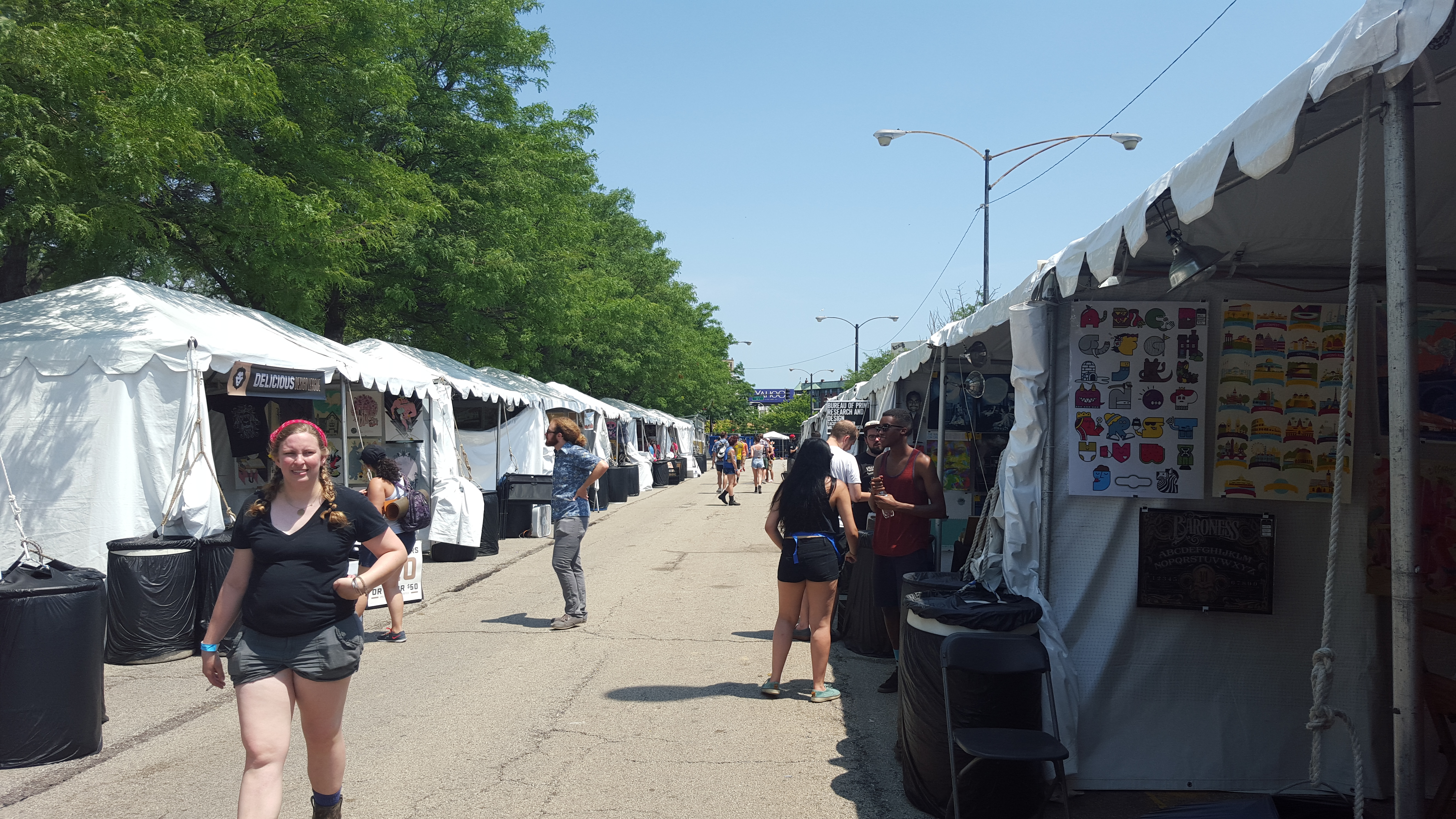 Union Park has been around since 1853, making it older than Canada itself (sheesh), and it was the playground for the Festival for which I came for. I decided to get there early because I didn’t know how the line-up would fare. It wasn’t bad at all, and I got in relatively quickly. I have a paranoia about bringing my DSLR camera, because so many places won’t let you in with a detachable camera unless you’re media, and I wasn’t. Thankfully my phone (Galaxy S6) has a more-than-just-decent camera for me to take photos. I walked around a bit and checked out what was happening, because it’s not just all music. There were food tents & trucks, drink tents, even two big areas that occupied a Tennis court that housed merchandise, and just outside of those were other merchant tents and artwork.
