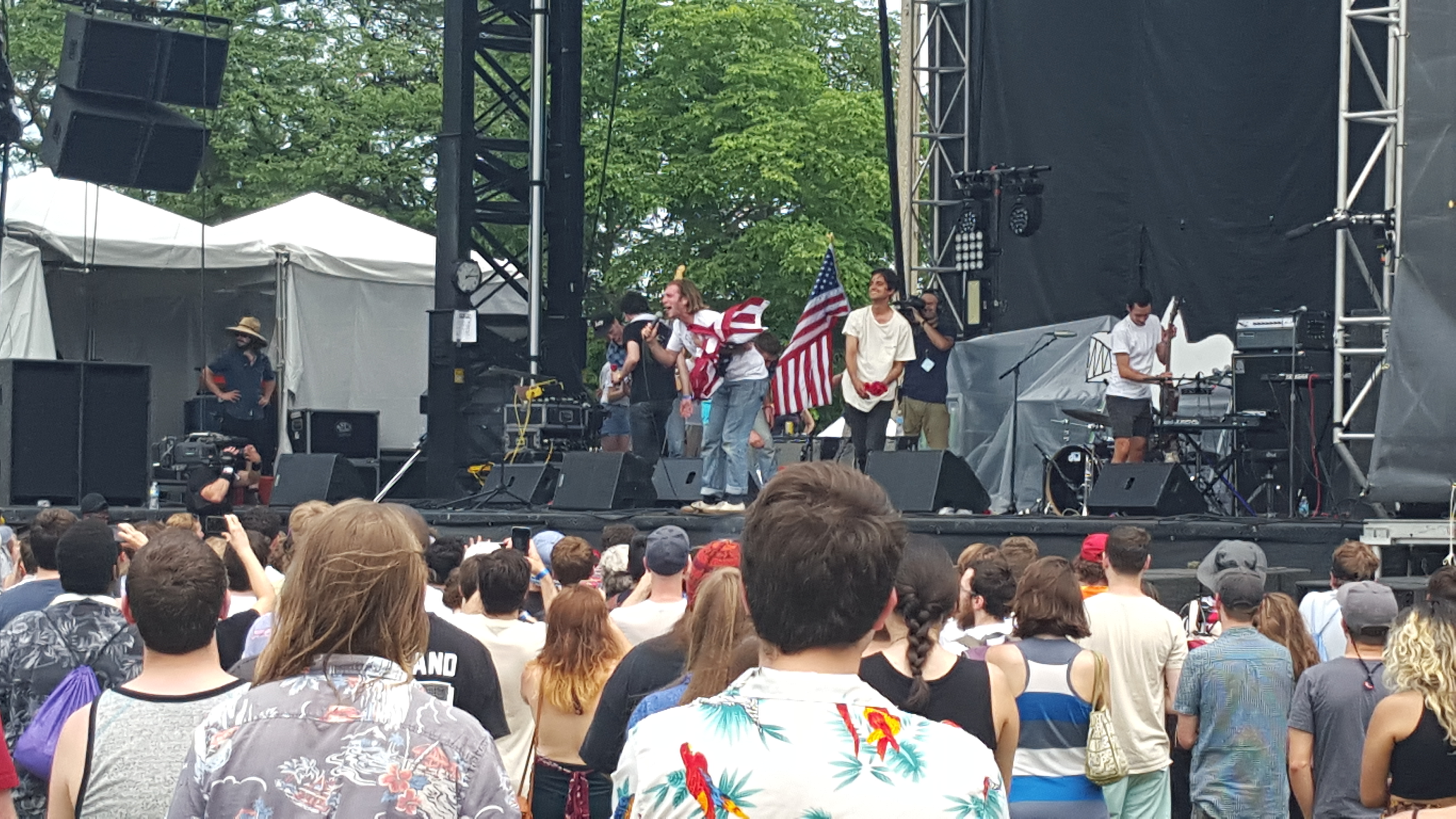 The purpose of these festivals (like Pitchfork, Lollapalooza, etc.) is to showcase not just Hip Hop, which is what I primarily listen to, but genres all over. Rock & Roll is still very much so a very overall American genre, so there would definitely be plenty of that, as well as electronic and whatever else Pitchfork Media covers on their site that displays their musical diversity. Music that I don’t listen to often doesn’t mean that it can’t be enjoyed. I made my way across the park to the Blue Stage where a rock band named Bully would be performing, but I stopped and got some American poutine and I wanted to see how it stacked up against the Canadian version, which is the greater of the 2. Needless to say, Canadians are still victorious in that category. The first thing that struck me about Bully was the lead singer, Alicia Bognanno. Her voice was dominant, and for it to come from such a small figure, that was the more impressive thing about it. I don’t listen to Rock voluntarily out of the generosity of my own ears, but it was really a set that I enjoyed from start to finish because they had great songs, and as much as the screaming may have been a constant, it wasn’t obnoxious to the point where I was cringing within. I was actually enjoying it. They hail from Tennessee, Rock & Roll Capital of the World, so it doesn’t surprise me that they sounded as good as they did live. I’m going to check out their album, Feels Like, a spin (Trying is a great song).