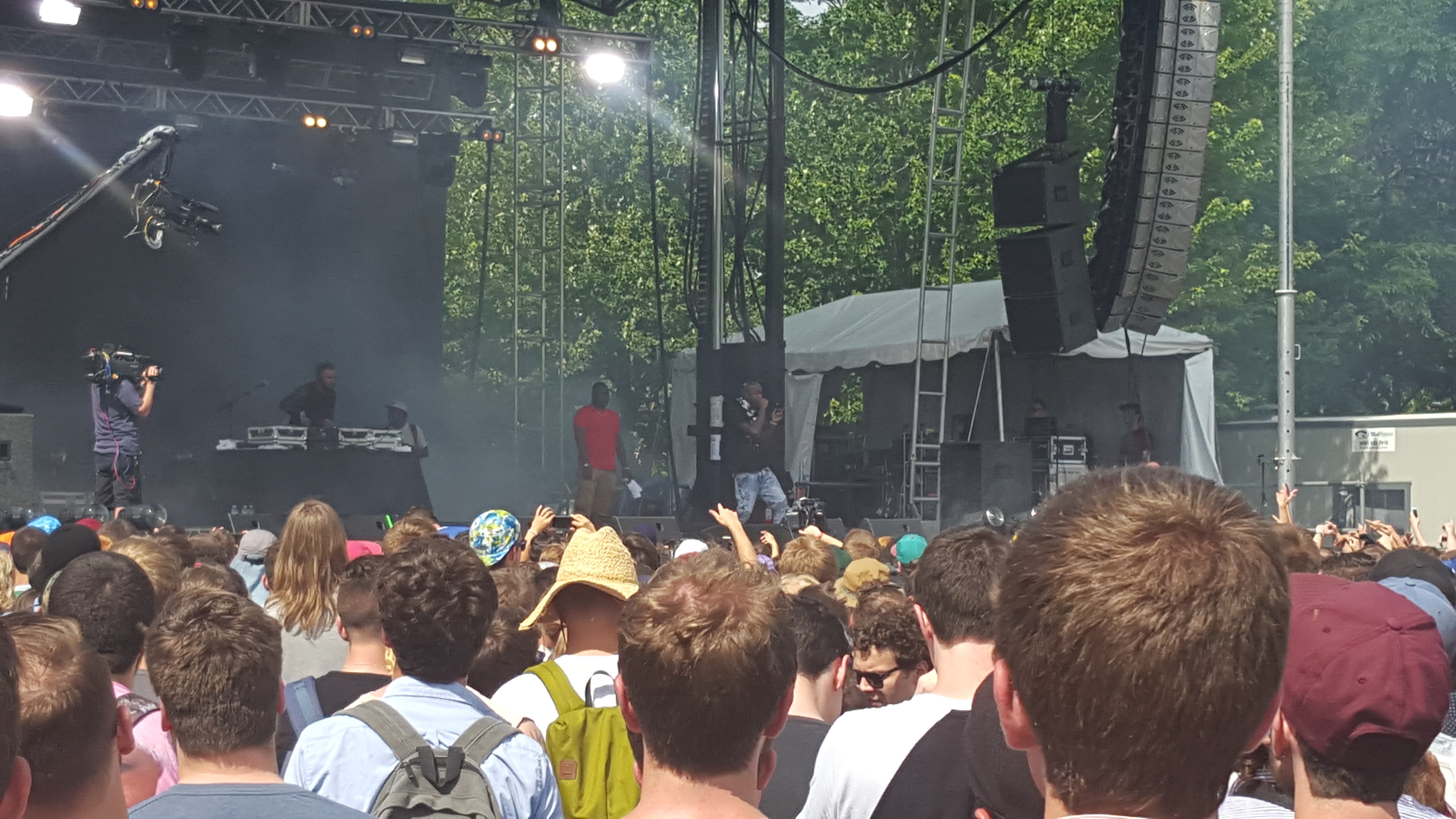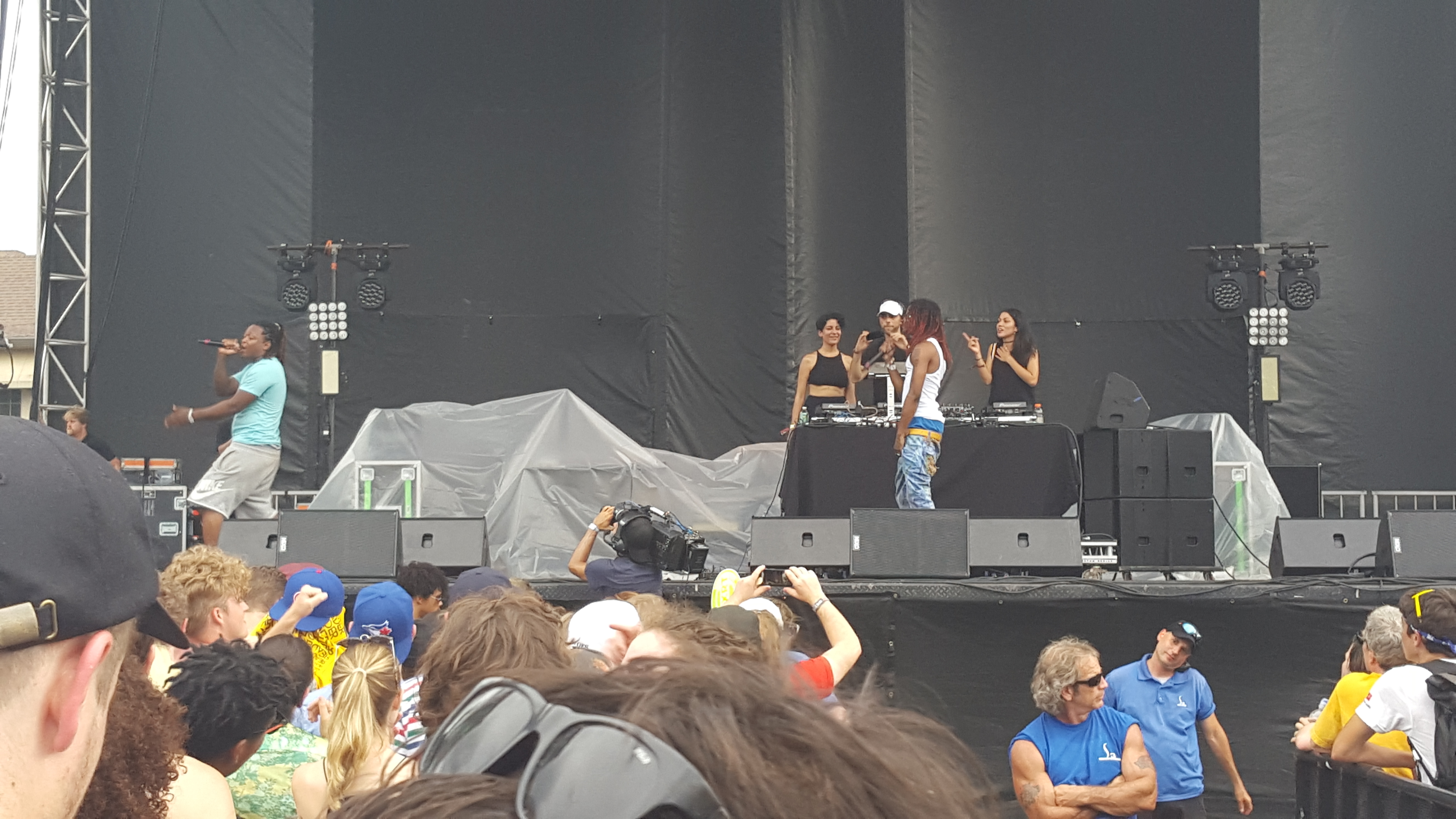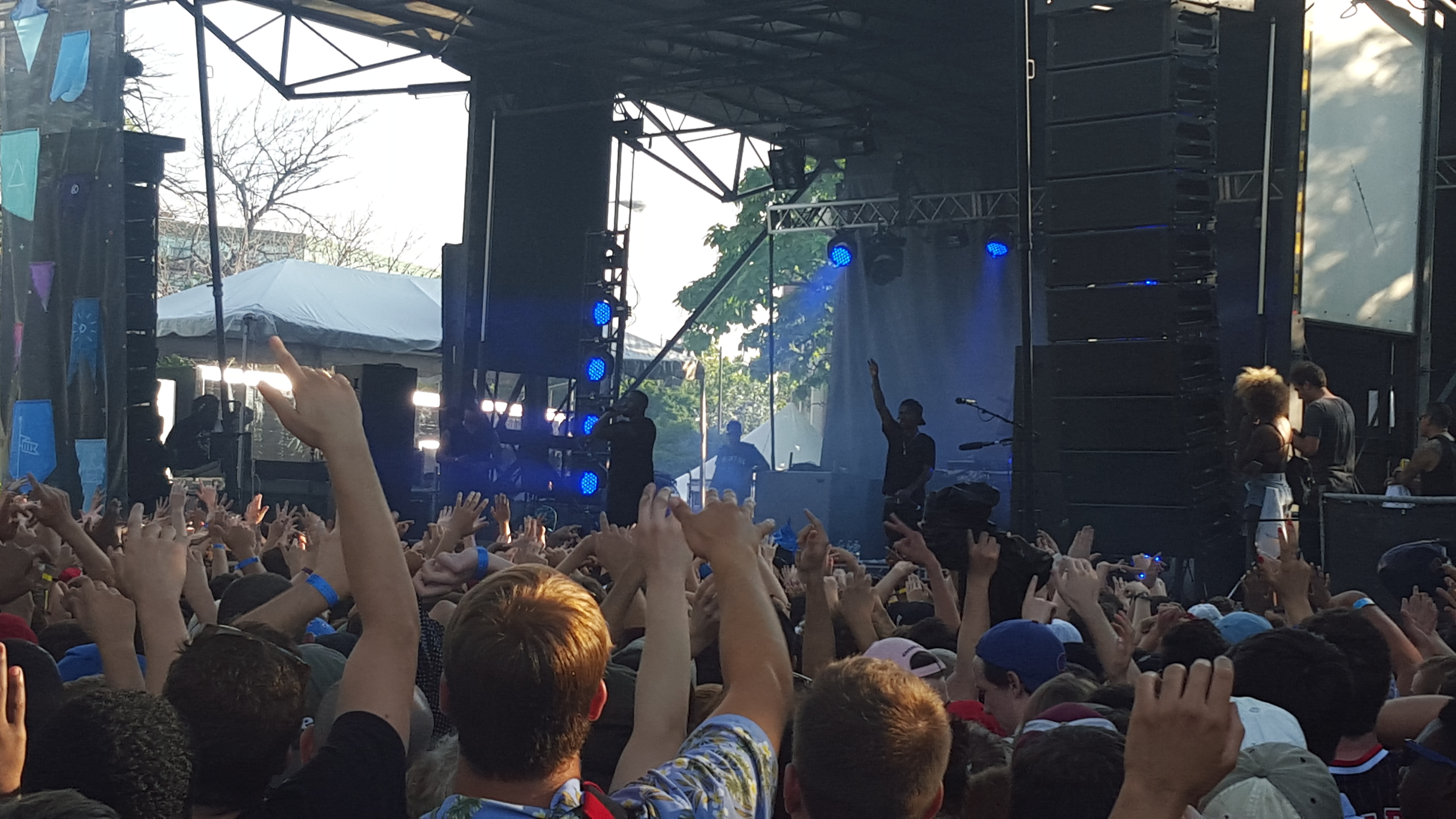 No lie, it was hot as Hades in Chicago that day, but I was perfectly okay with it. I had my water, and I hat, so everything was all good. My skin felt great being exposed to the sunlight. The forecast didn’t call for any rain, though it did for Sunday (I bought a poncho on Friday to be safe), but as I made my way back to the Green stage for Future Brown’s set (he’s a DJ), it started to get a little cloudy, but I figured that was just something that would be passing by (or so I thought). Accompanying Future Brown on stage were some local rappers that I had no idea who they were, but the records that were spinning featured the likes of Chicago artists mixed in with some of the popular songs that were out and got the crowd energized (there wasn’t a huge presence, but they were still there).