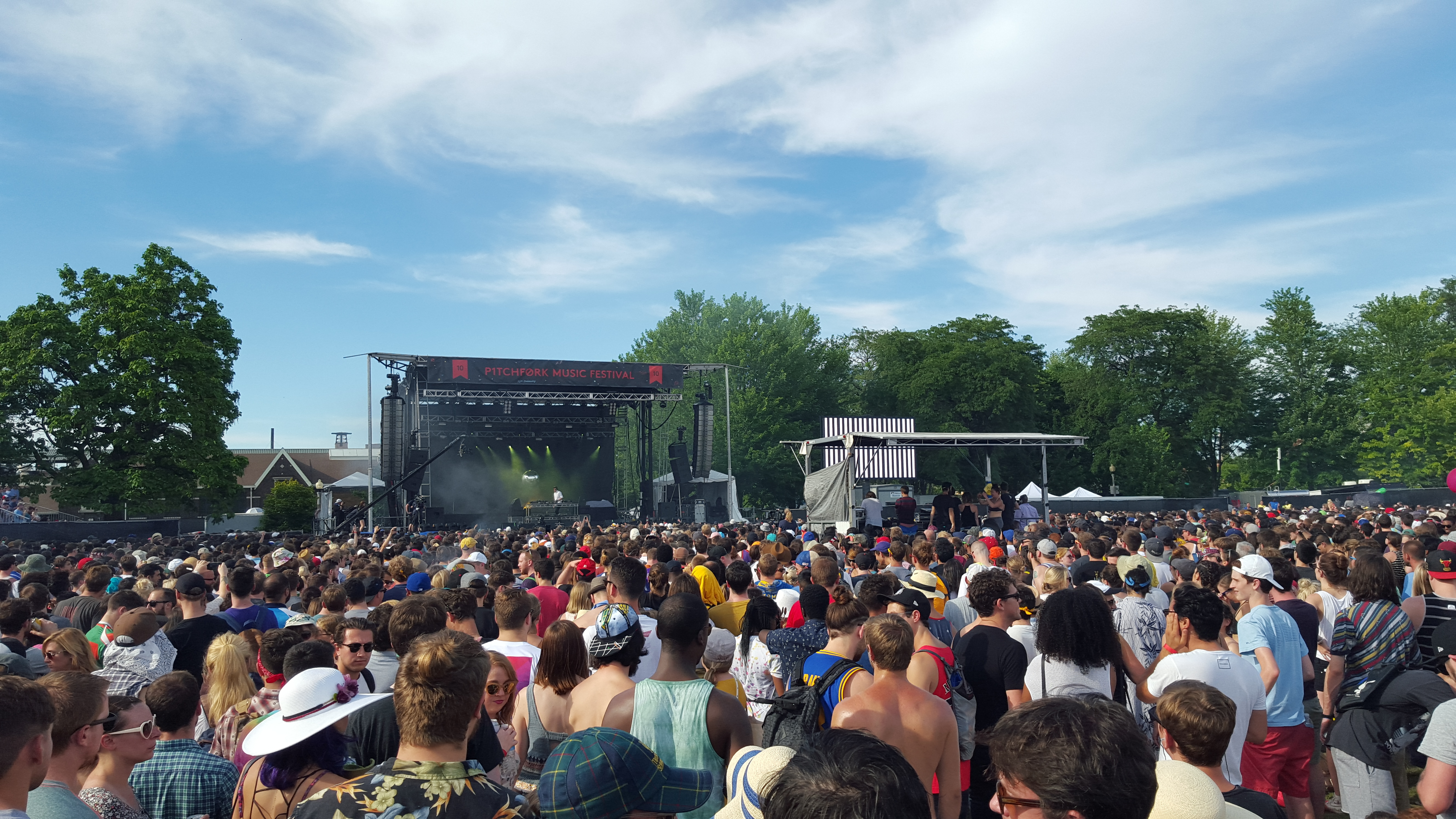 Just like that, I decided to stay and kick it with the people. One of my main struggles when it comes to Canadians at times is that they don’t have a lot of passion for sports the way I do. As I was walking down towards the lower level, I overheard people talking about football and my eyes just lit up, because that was my in to conversation. There’s really nothing that brings people together like sports & music, I truly believe that. After getting the names exchanged throughout, everything was just really chill, and out of nowhere, a loud bang went off, and no one seemed phased. One guy (Cory) said simply “Welcome to Chicago,” which I thought would have implied that it was a gunshot that went off, but they were firecrackers that were being lit down the street. They would be frequent throughout the night, and it really just cast a cool background as darkness fell deeper into the late hours of the night. There was a great assortment of singing, live instrumentation and rapping (met a group called The Terra Godz that will come up later in this piece). It was entertaining, and there was even a spirited conversation with some really laid-back people that I’d met. It was definitely a great first day, and considering that I had been awake since 7am (Eastern) that morning, I was surprised that I stayed awake to see all of it. But the main events were about to take place, so I had to rest up to get it going for my Day 1 (but Day 2) of Pitchfork Fest.